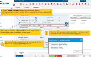 ebroker te permite seleccionar un emisor de remesas diferente al que la correduría tiene configurado por defecto.