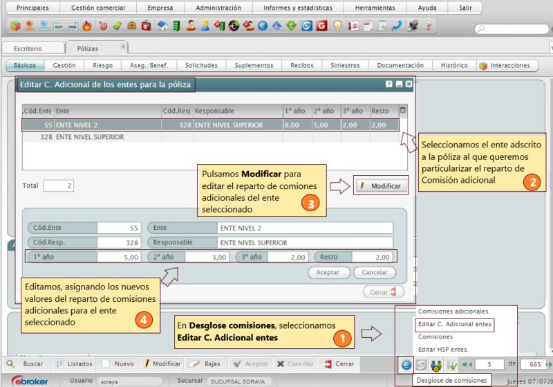 ebroker: Pólizas – Reparto de comisiones adicionales por ente.