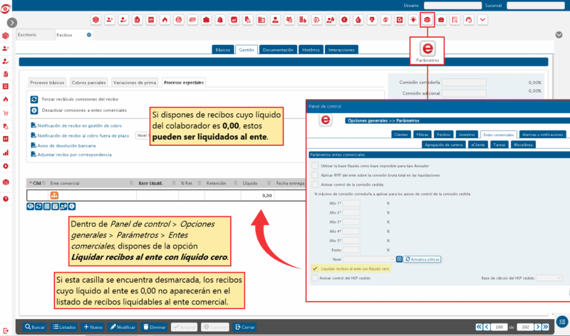ebroker, te permite liquidar recibos a tus entes comerciales cuyo líquido es cero.