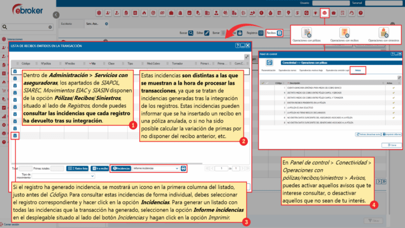 ebroker: Servicios con aseguradoras – Incidencias de integración de pólizas, recibos y siniestros
